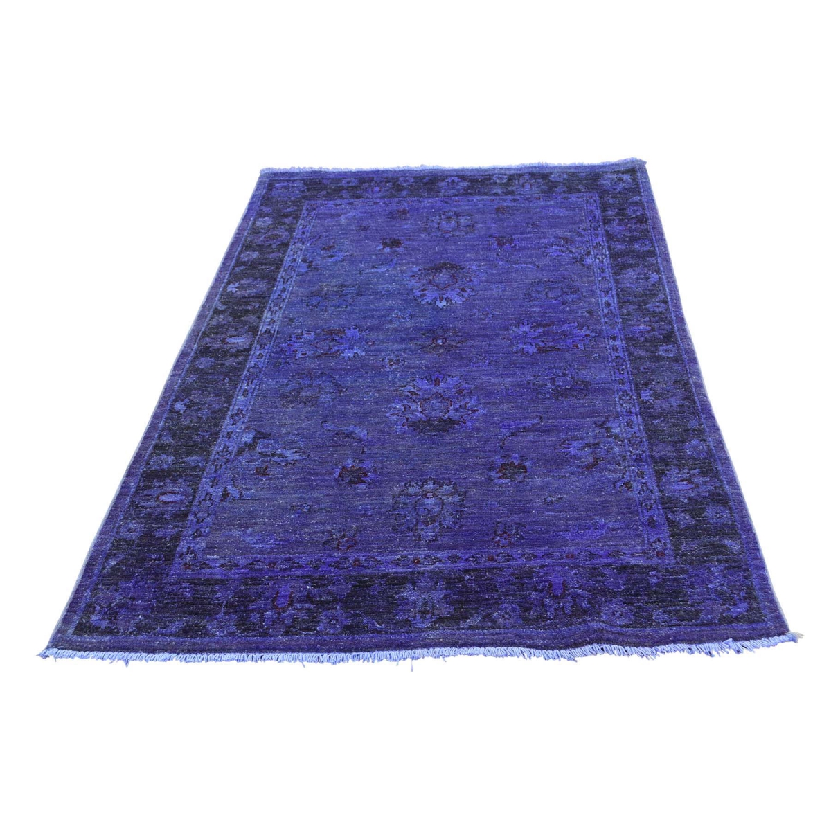 This is a truly genuine one-of-a-kind hand knotted purple cast overdyed peshawar pure wool oriental rug