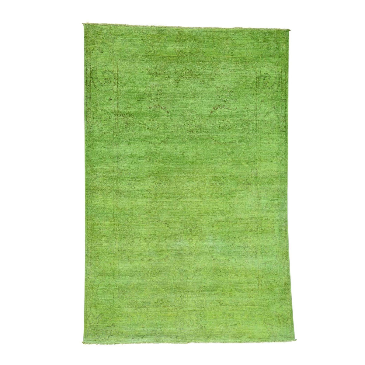 Features- This is a truly genuine one-of-a-kind hand knotted green cast peshawar overdyed pure wool oriental rug