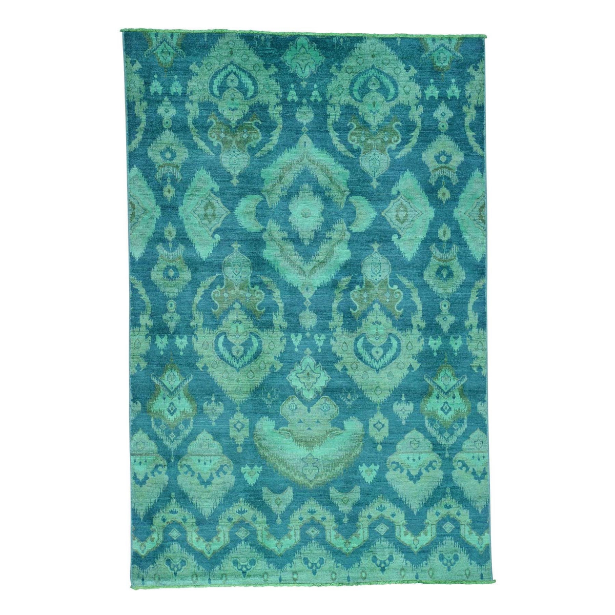 1800 Get A Rug sh35053 6 ft. x 9 ft. 1 in. Hand Knotted Teal Cast Ikat Overdyed Pure Wool Oriental Rug Blue