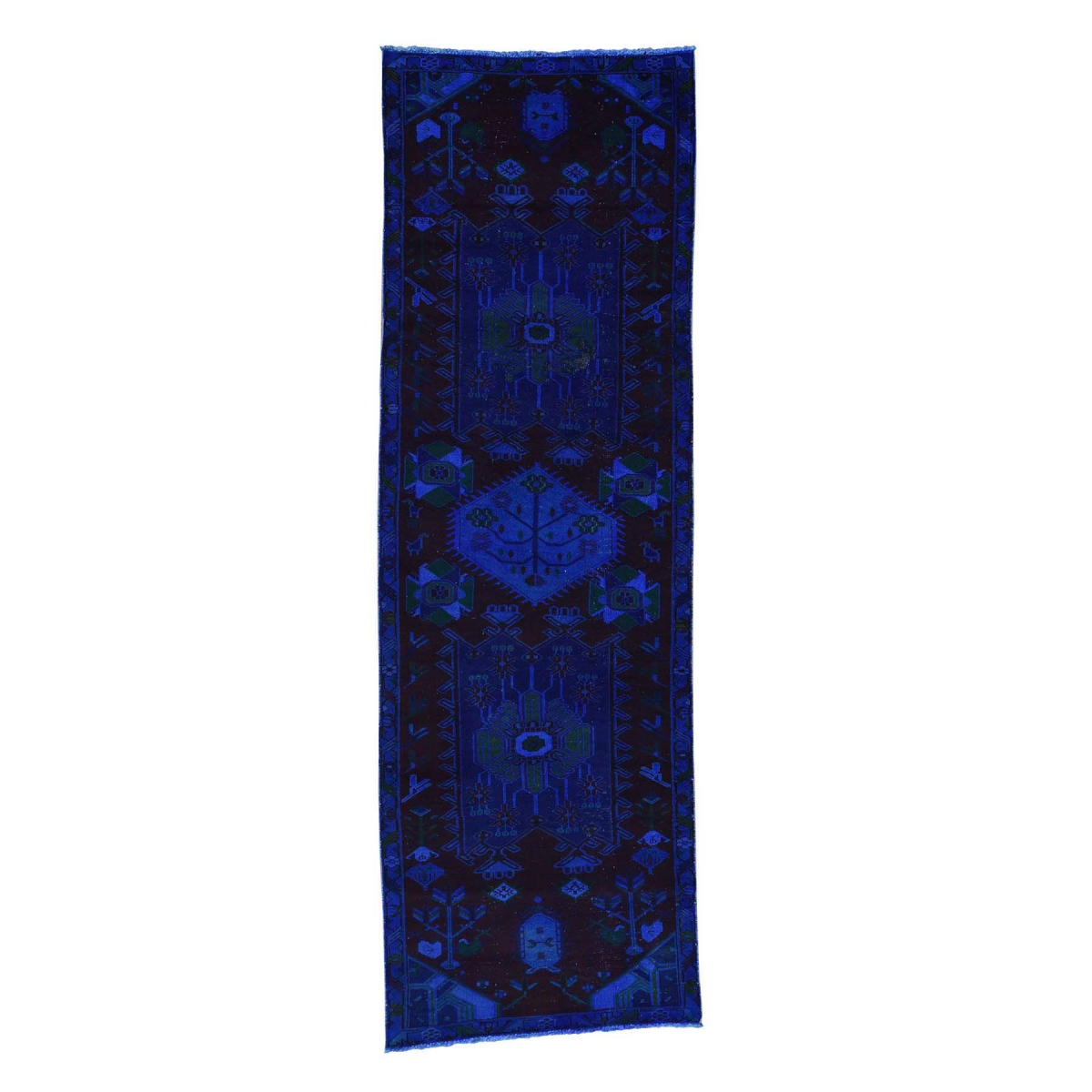 1800 Get A Rug sh35105 3 ft. 4 in. x 10 ft. 2 in. Hand Knotted Overdyed Persian Hamadan Runner Rug Navy