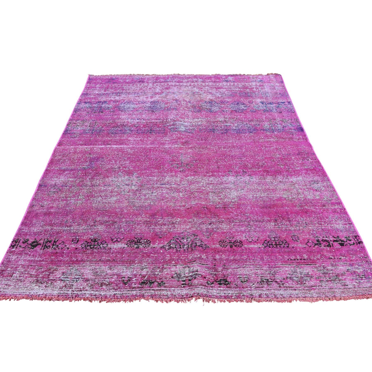 Features- This is a truly genuine one-of-a-kind hand-knotted pink worn overdyed persian tabriz pure wool rug