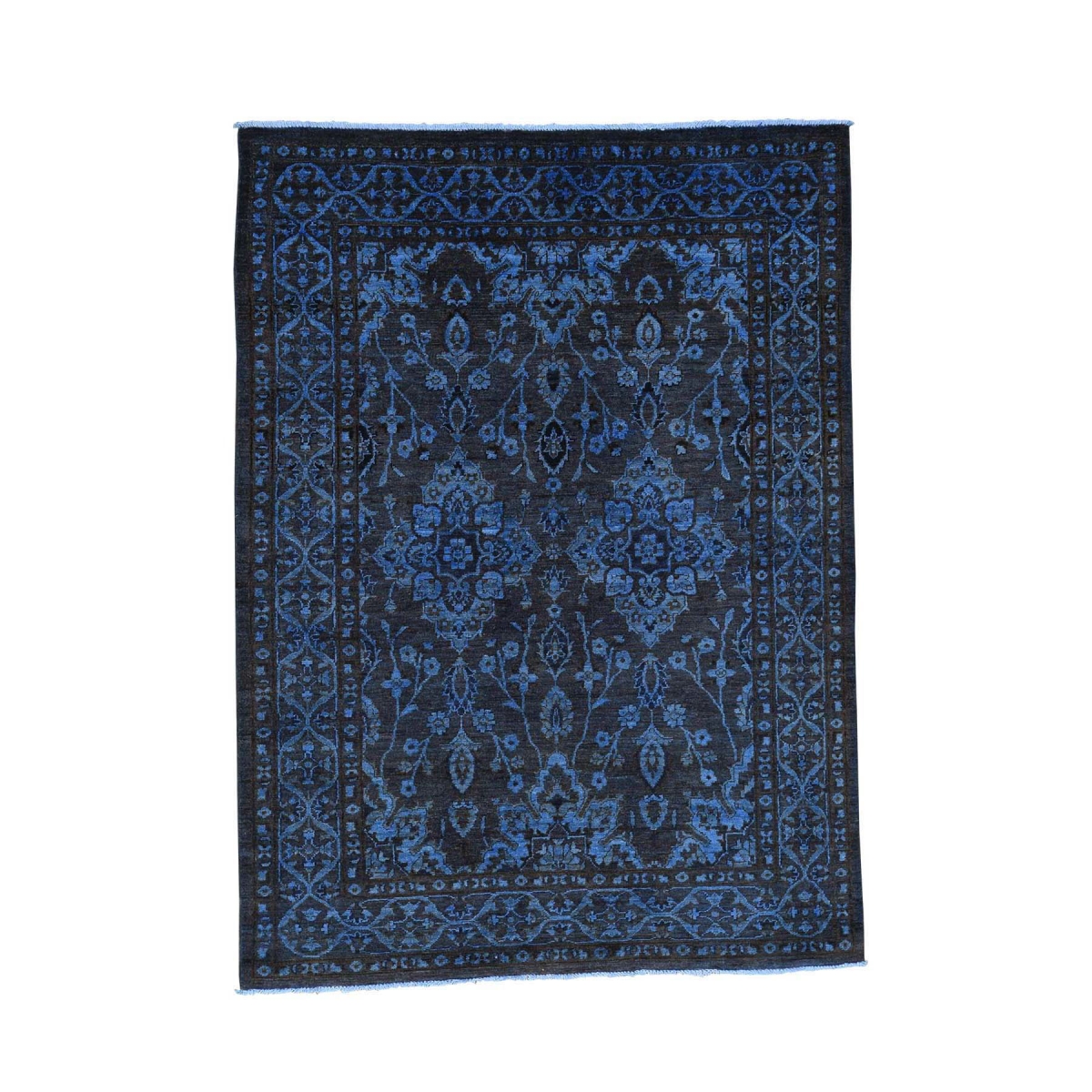Features- This is a truly genuine one-of-a-kind hand knotted navy blue cast peshawar overdyed pure wool rug
