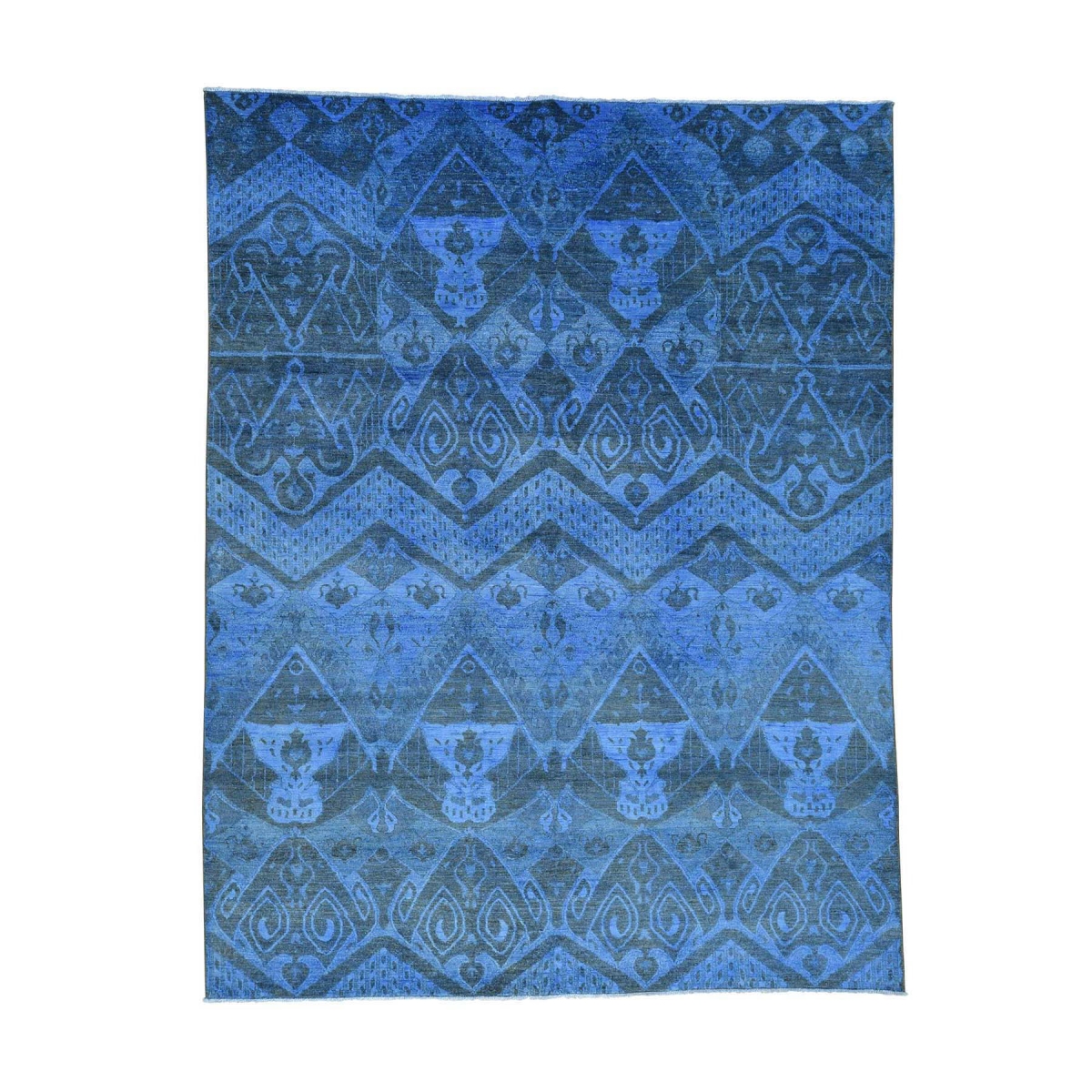 Features- This is a truly genuine one-of-a-kind hand knotted denim blue ikat overdyed pure wool oriental rug