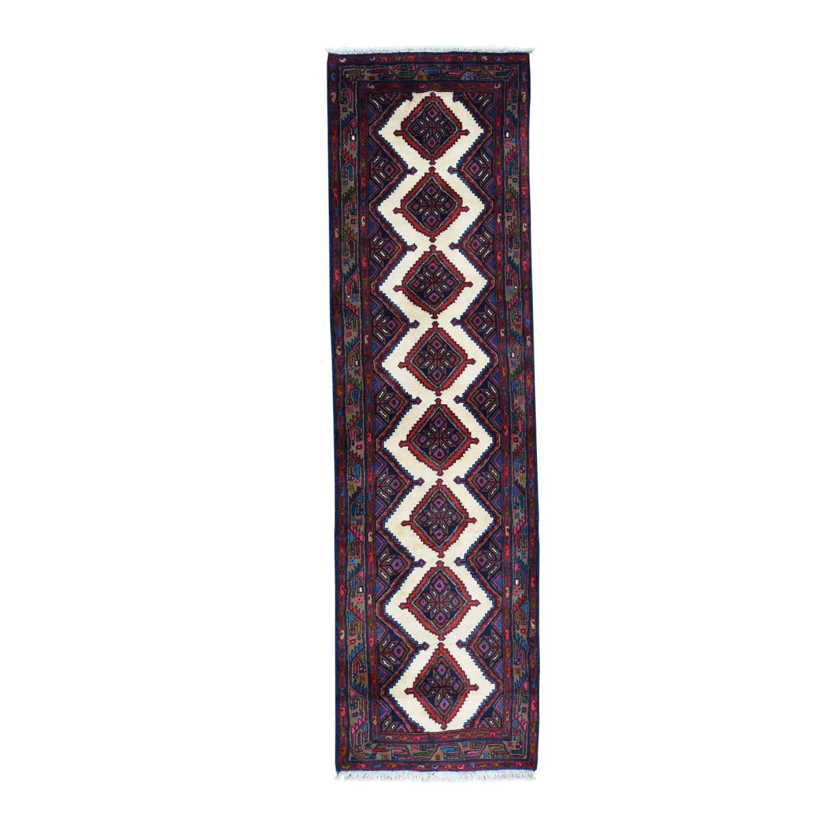 1800 Get A Rug sh35175 2 ft. 9 in. x 9 ft. 9 in. Hand Knotted Semi-Antique Persian Hamadan Runner Rug Ivory
