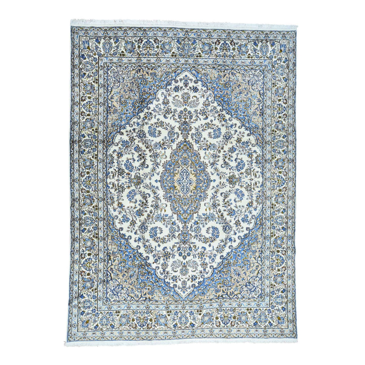 Features- This is a truly genuine one-of-a-kind hand-knotted persian kerman 100 percent wool ivory oriental rug