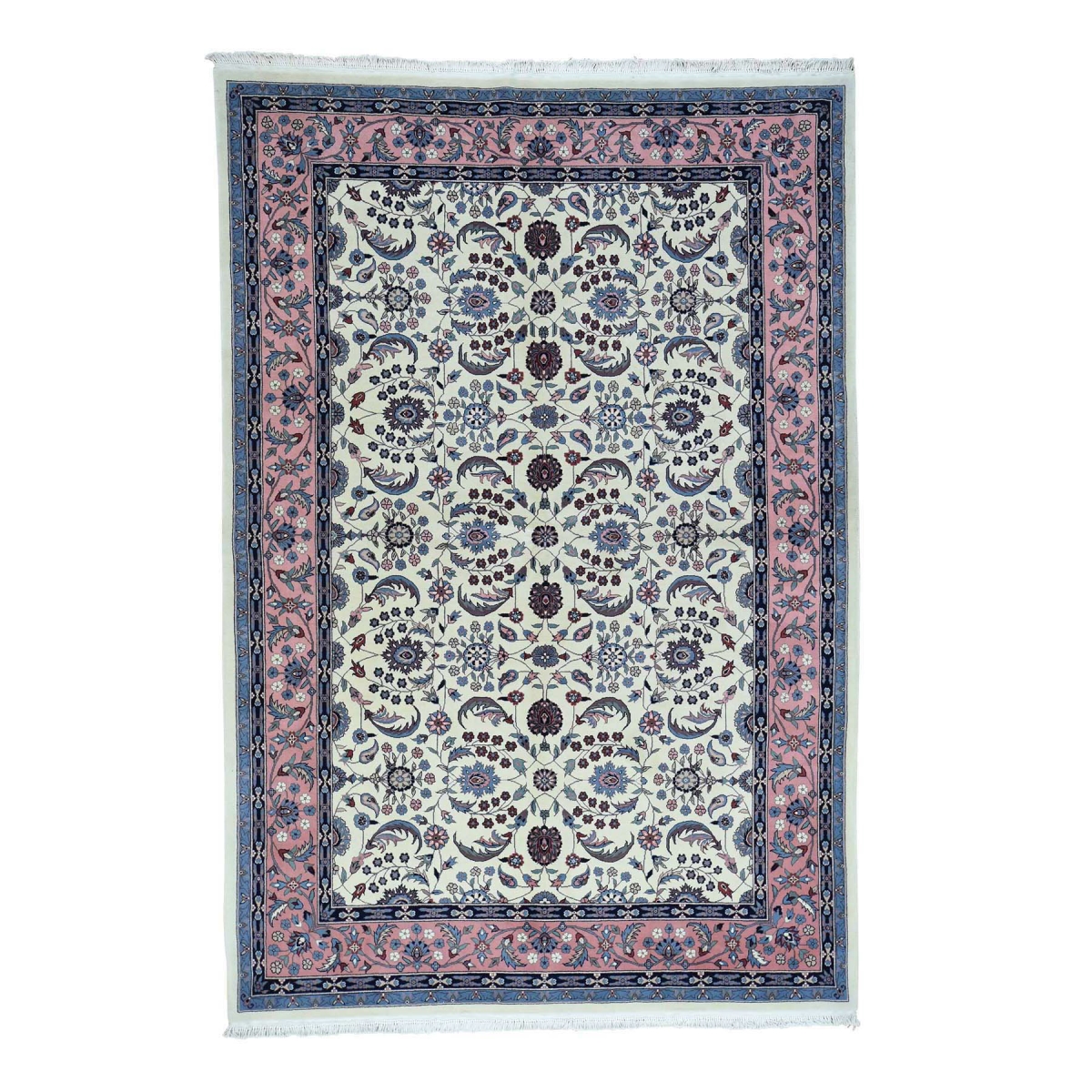 1800 Get A Rug sh35193 6 ft. 3 in. x 9 ft. 4 in. Hand Knotted Persian Sino Tabriz Wool and Silk Oriental Rug Ivory