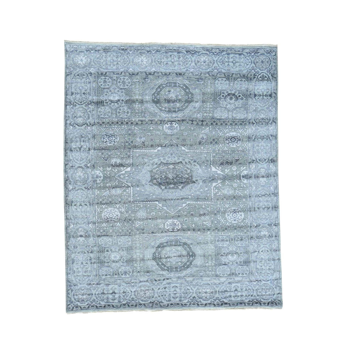 This is a truly genuine one-of-a-kind handmade silver wash wool and silk mamluk design oriental rug