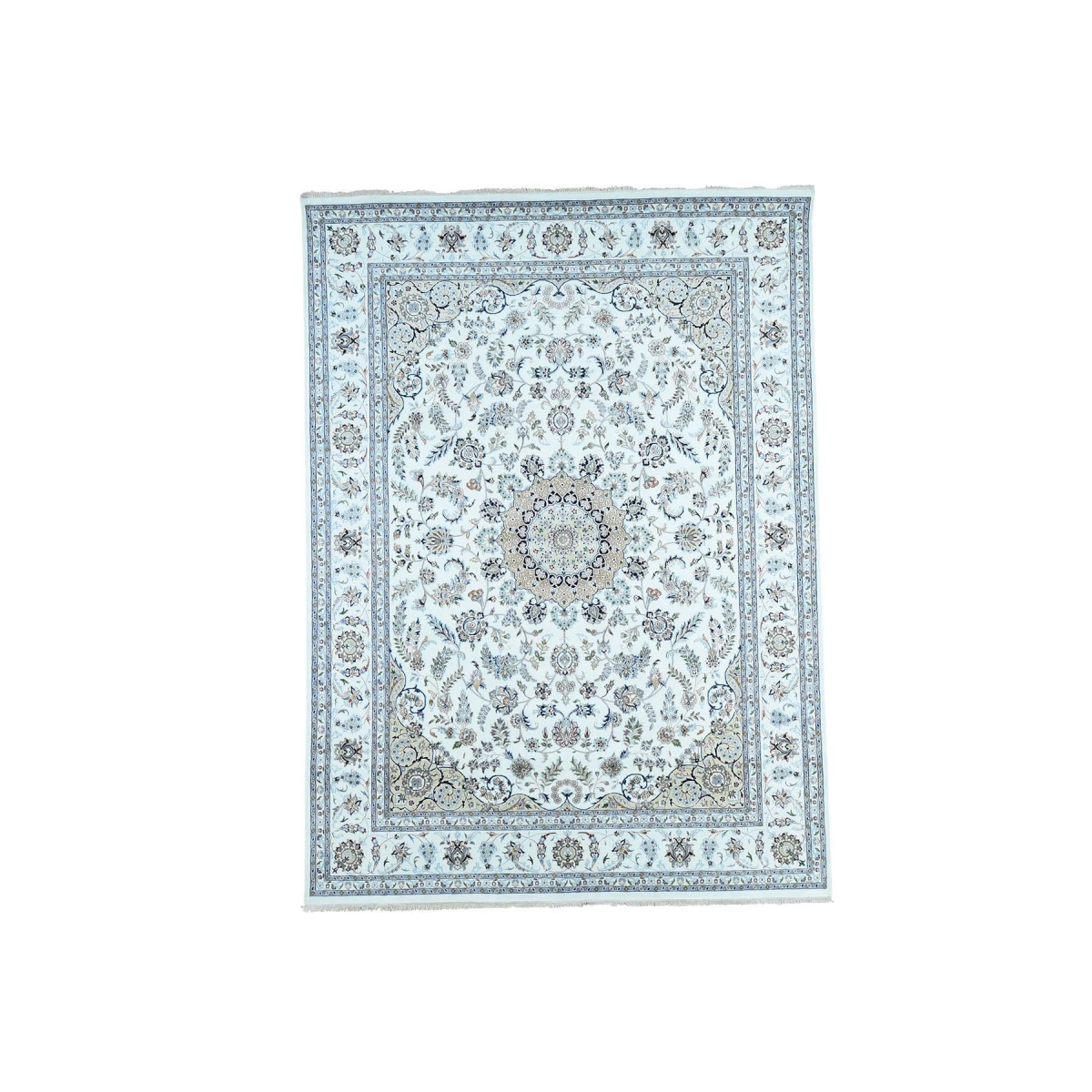 Features- This is a truly genuine one-of-a-kind hand-knotted wool and silk 250 kpsi ivory nain oriental rug