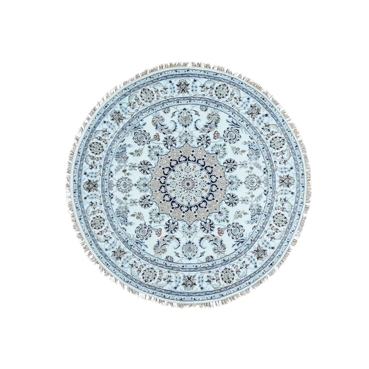 Features- This is a truly genuine one-of-a-kind wool and silk hand-knotted 250 kpsi nain round oriental rug