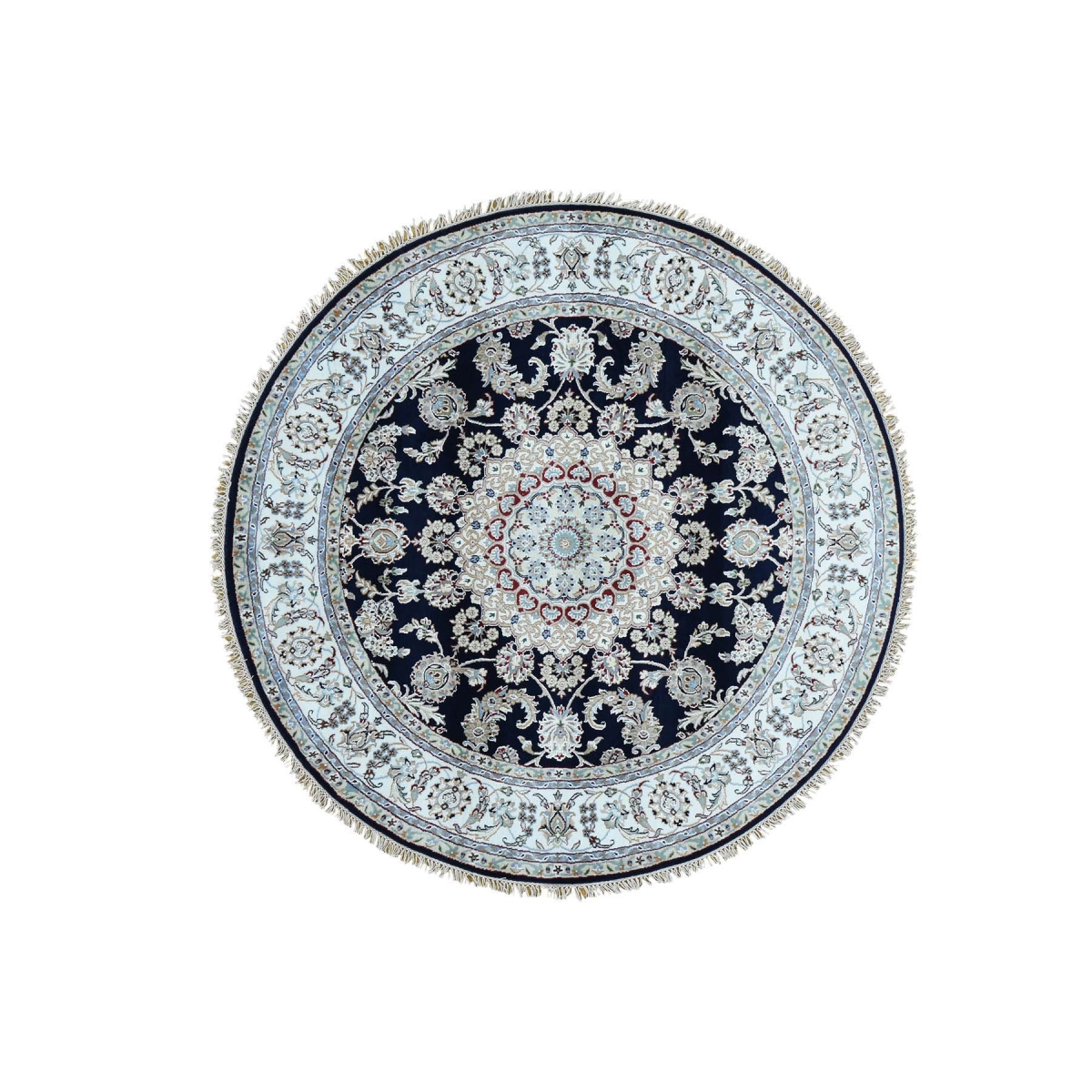 1800 Get A Rug sh35254 3 ft. 6 in. x 3 ft. 7 in. Hand Knotted Wool and Silk 250 KPSI Nain Round Rug Navy Blue
