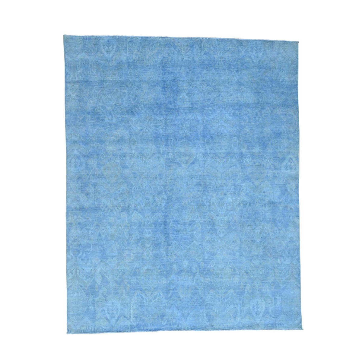 Features- This is a truly genuine one-of-a-kind hand-knotted pure wool sky blue overdyed ikat oriental rug
