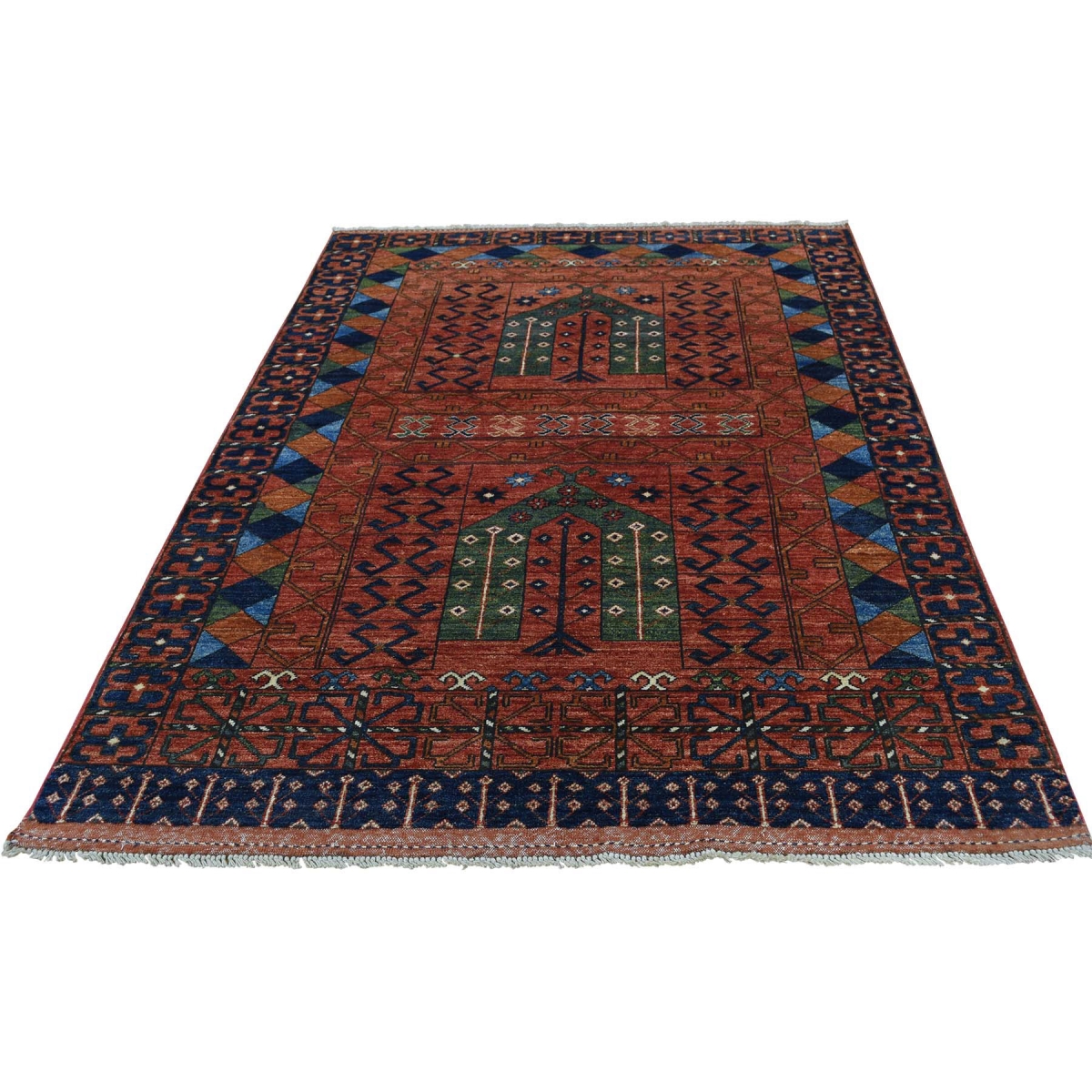 Features- This is a truly genuine one-of-a-kind hand-knotted afghan ersari prayer design pure wool oriental rug