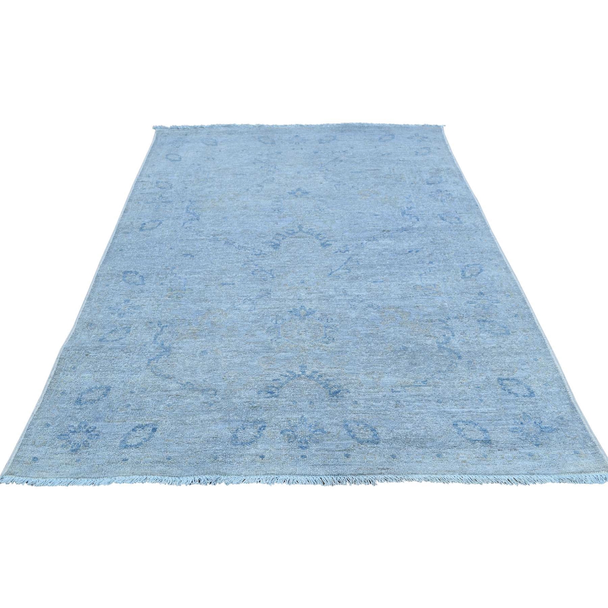 1800 Get A Rug sh35390 4 ft. 2 in. x 6 ft. 1 in. Hand Knotted Silver Wash Peshawar Pure Wool Oriental Rug Blue