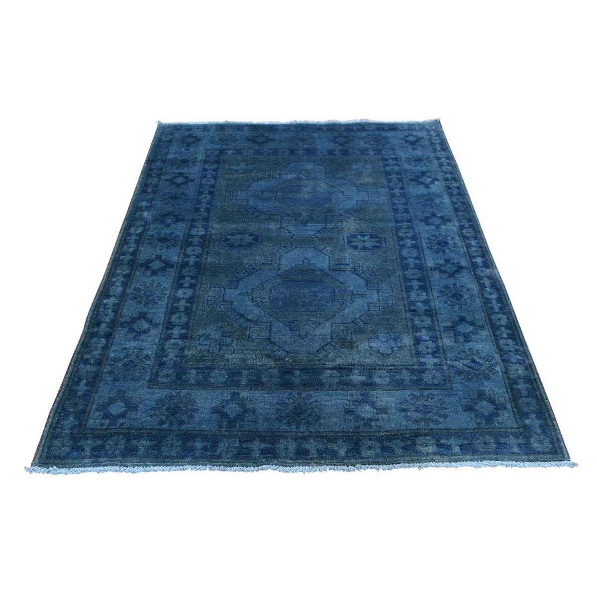 1800 Get A Rug sh35392 3 ft. 7 in. x 4 ft. 8 in. Hand Knotted Geometric Peshawar Overdyed Pure Wool Oriental Rug Blue