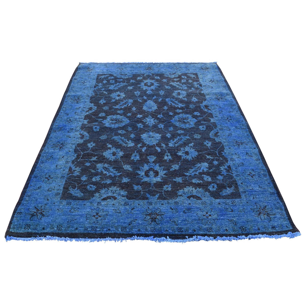 1800 Get A Rug sh35396 4 ft. 1 in. x 6 ft. 1 in. Hand Knotted Denim Blue Cast Overdyed Peshawar Pure Wool Rug Blue