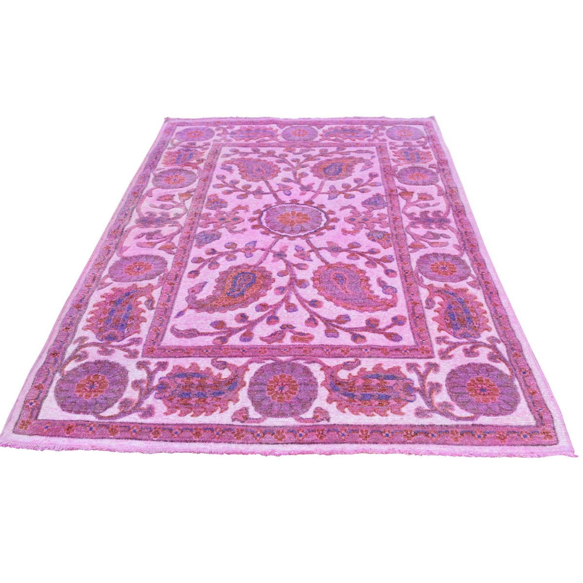 1800 Get A Rug sh35405 4 ft. 2 in. x 6 ft. 6 in. Hand Knotted Ikat Overdyed Suzani Design High and Low Pile Rug Pink