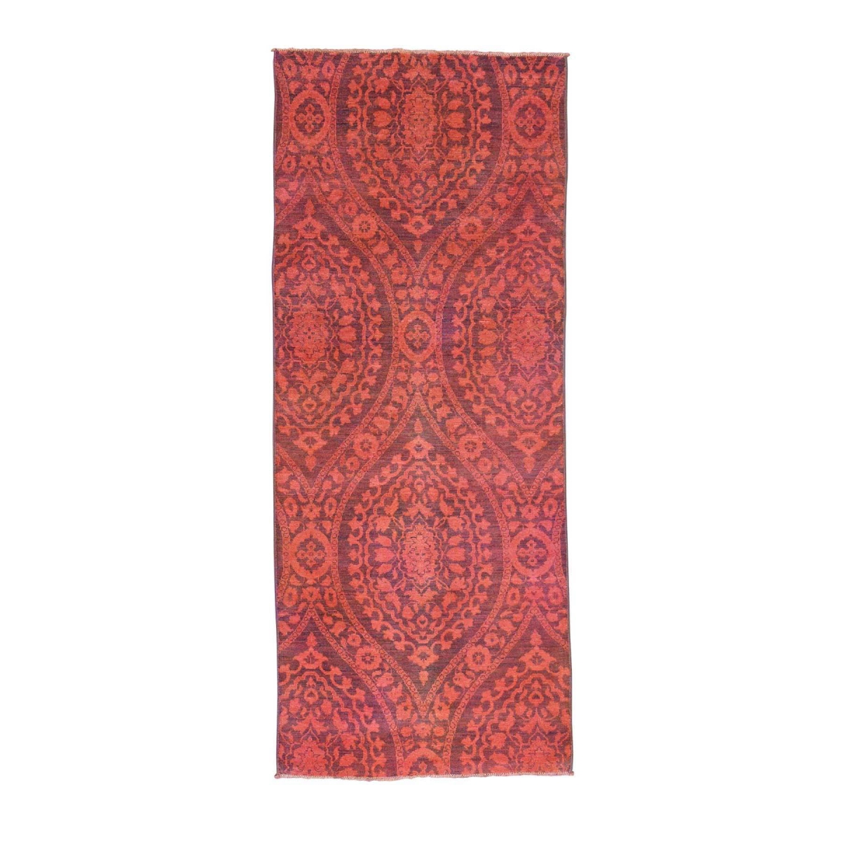1800 Get A Rug sh35413 4 ft. 1 in. x 10 ft. Hand Knotted Peshawar Damask Overdyed Wide Runner Oriental Rug Red