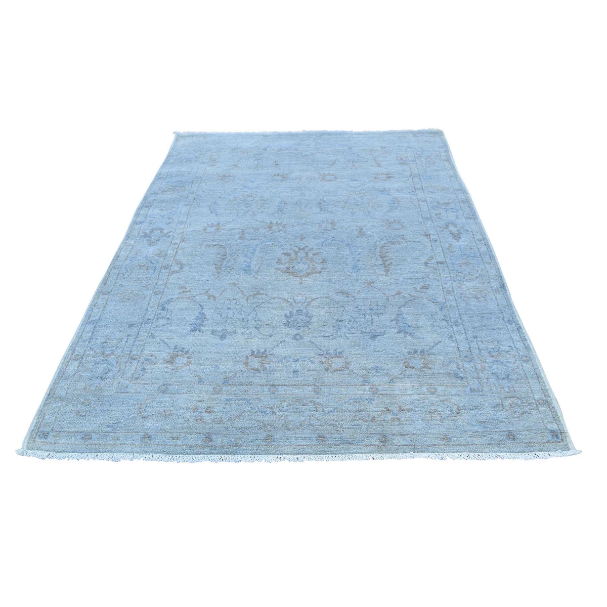 1800 Get A Rug sh35415 4 ft. x 6 ft. 1 in. Silver Wash Peshawar Pure Wool Hand Knotted Oriental Rug Blue