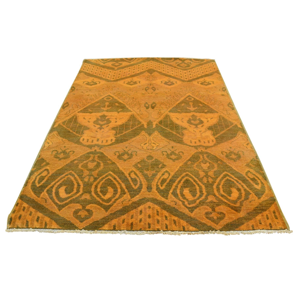 1800 Get A Rug sh35436 4 ft. 1 in. x 6 ft. 2 in. Hand Knotted Cast Ikat Overdyed Pure Wool Oriental Rug Orange