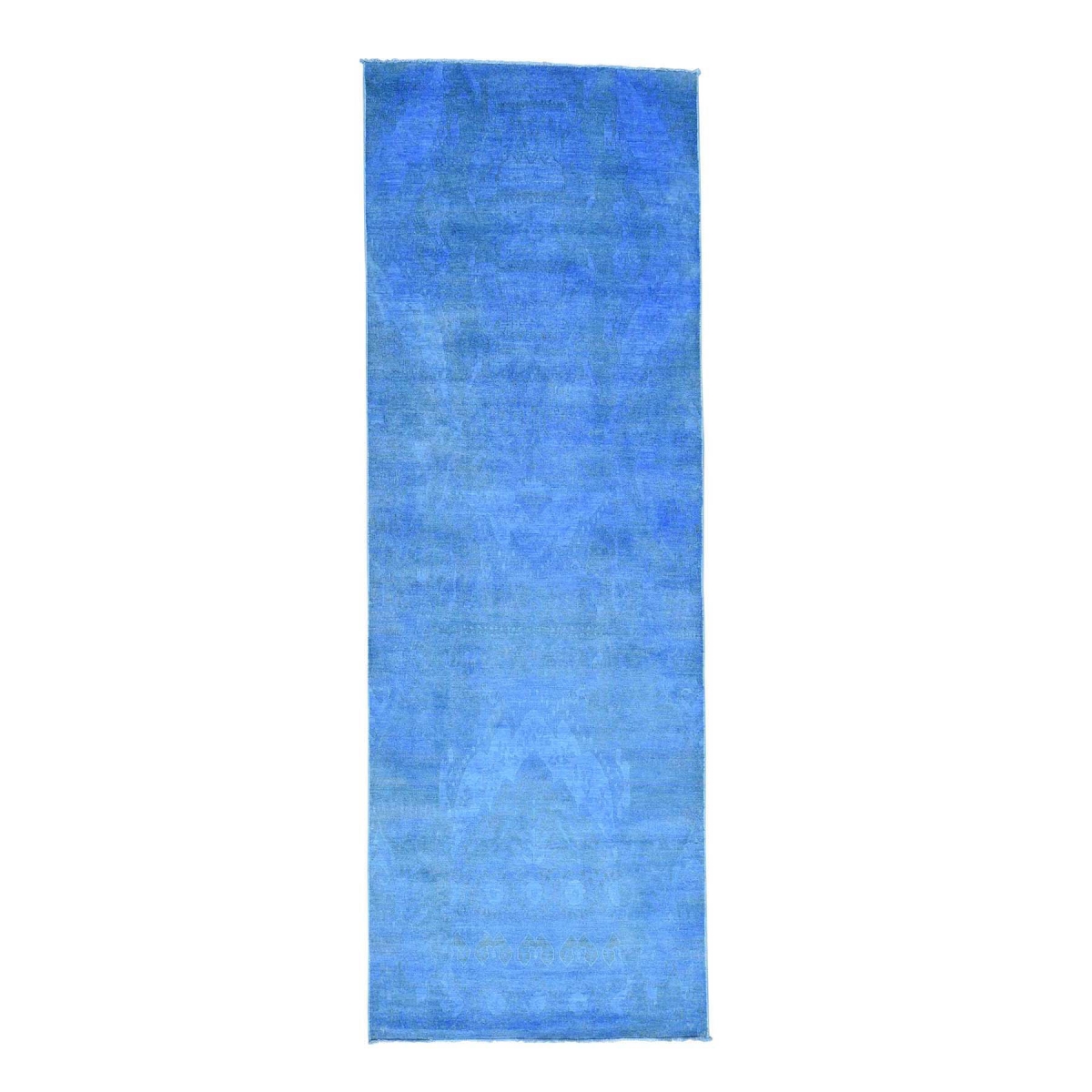 1800 Get A Rug sh35437 4 ft. 2 in. x 12 ft. Hand Knotted Cast Ikat Overdyed Pure Wool Wide Runner Rug Blue