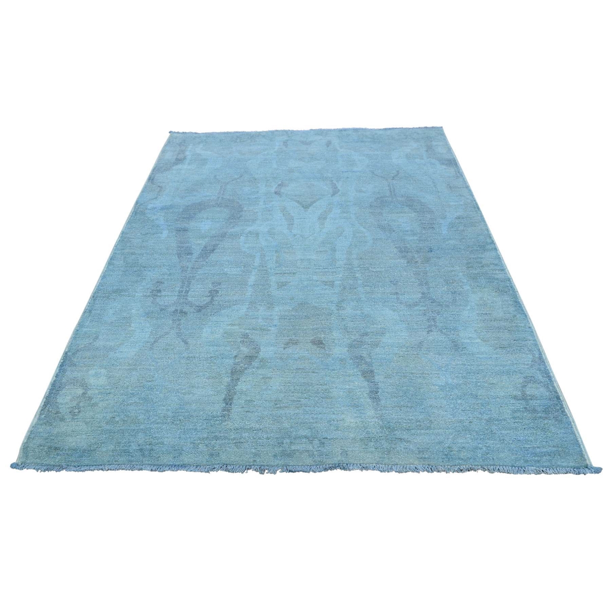 1800 Get A Rug sh35445 4 ft. 1 in. x 6 ft. 2 in. Hand Knotted Ikat Overdyed Cast Pure Wool Oriental Rug Sky Blue