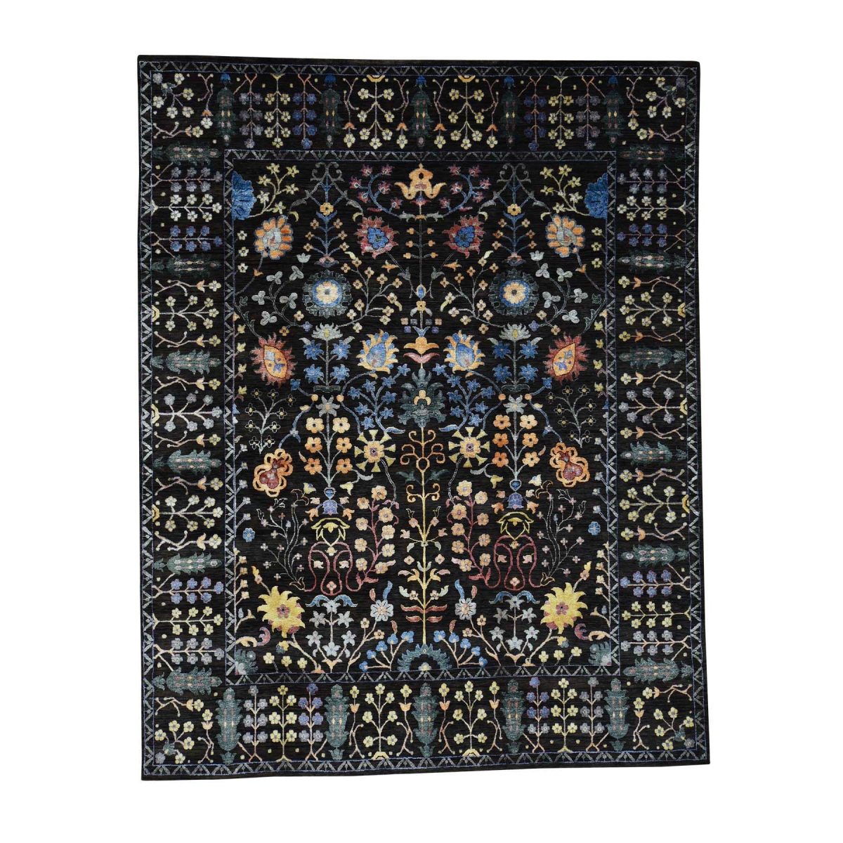 Features- This is a truly genuine one-of-a-kind hand knotted arts and crafts design wool and silk oriental rug