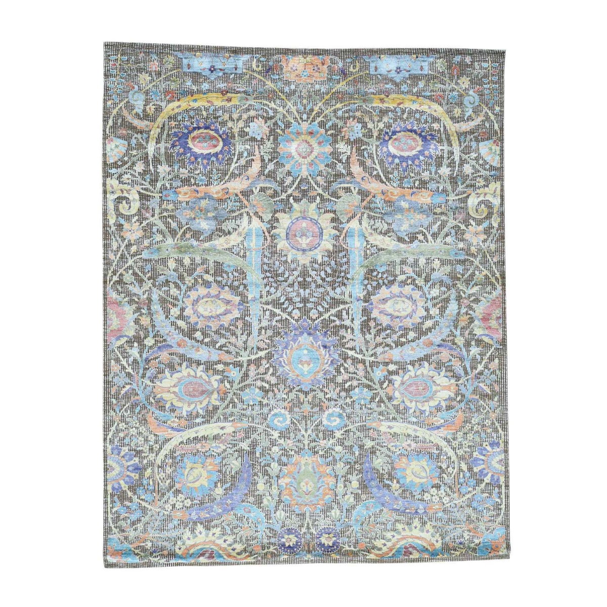 Features- This is a truly genuine one-of-a-kind hand-knotted sickle leaf design oxidized wool and art silk rug