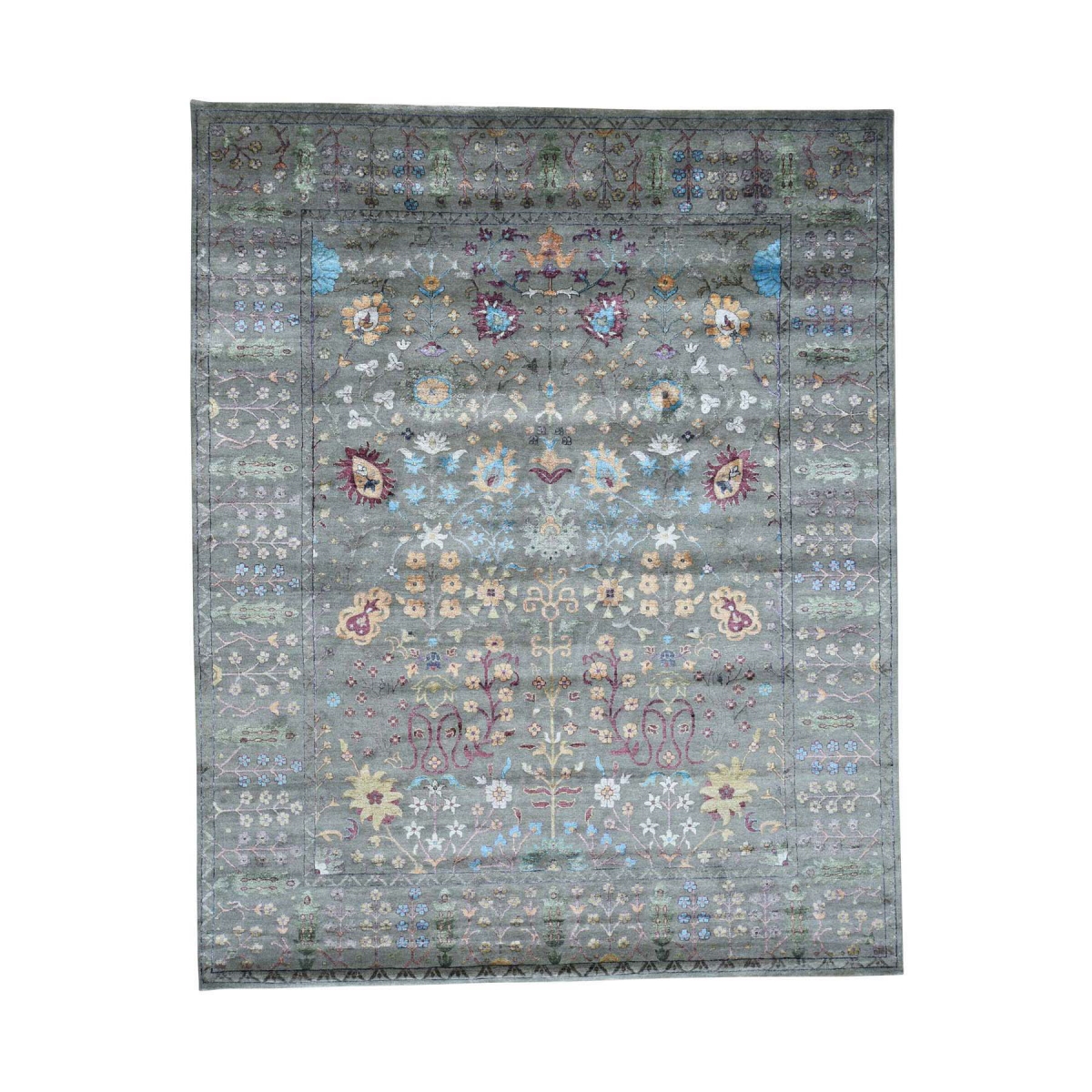 Features- This is a truly genuine one-of-a-kind hand knotted arts and crafts design wool and silk oriental rug
