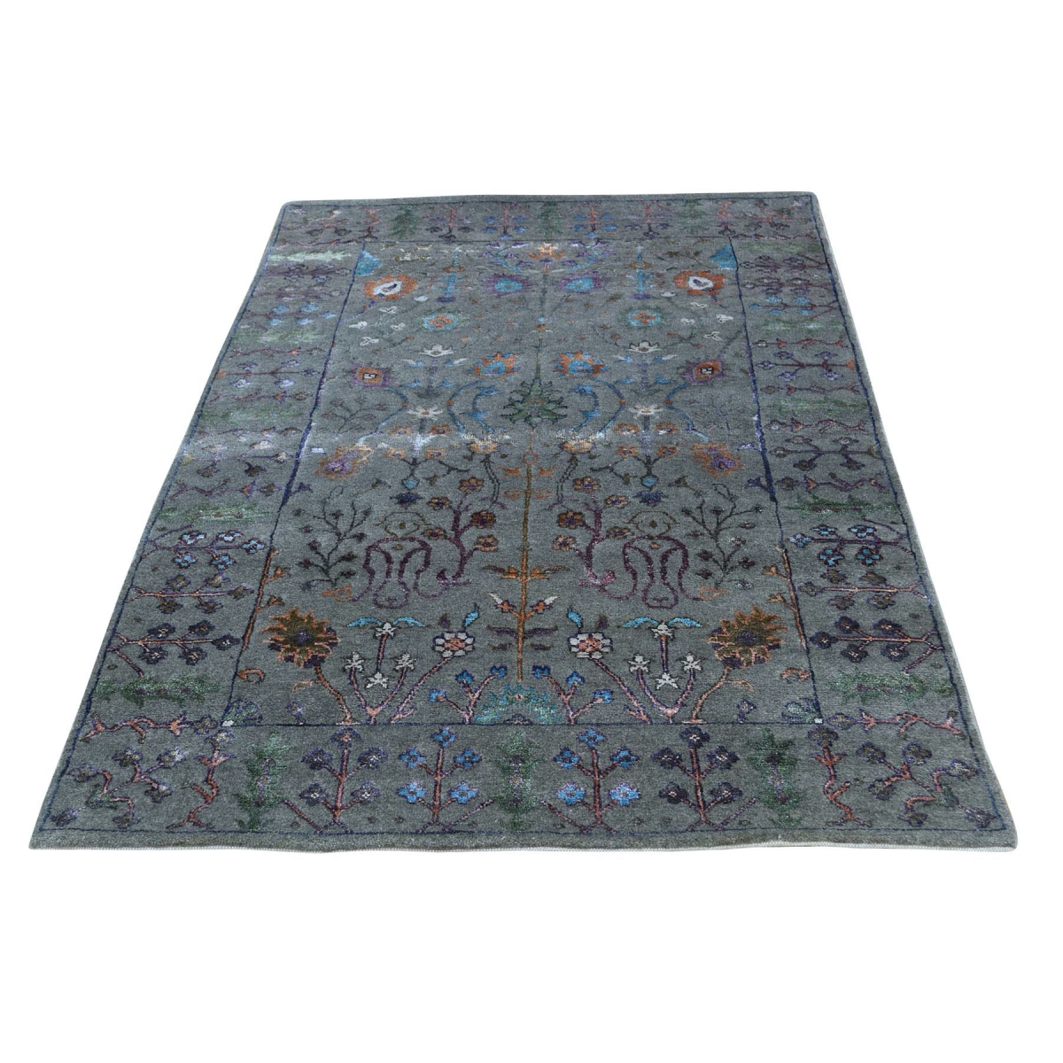 Features- This is a truly genuine one-of-a-kind hand knotted arts and crafts design wool and silk oriental rug