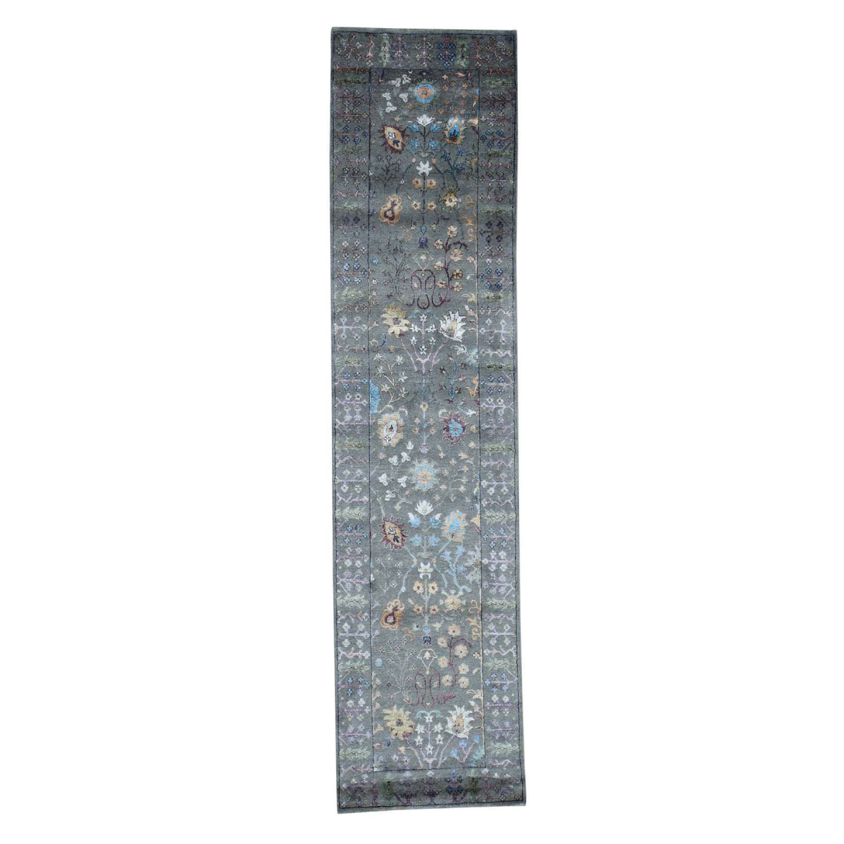 Features- This is a truly genuine one-of-a-kind arts and crafts design wool and silk hand knotted runner rug