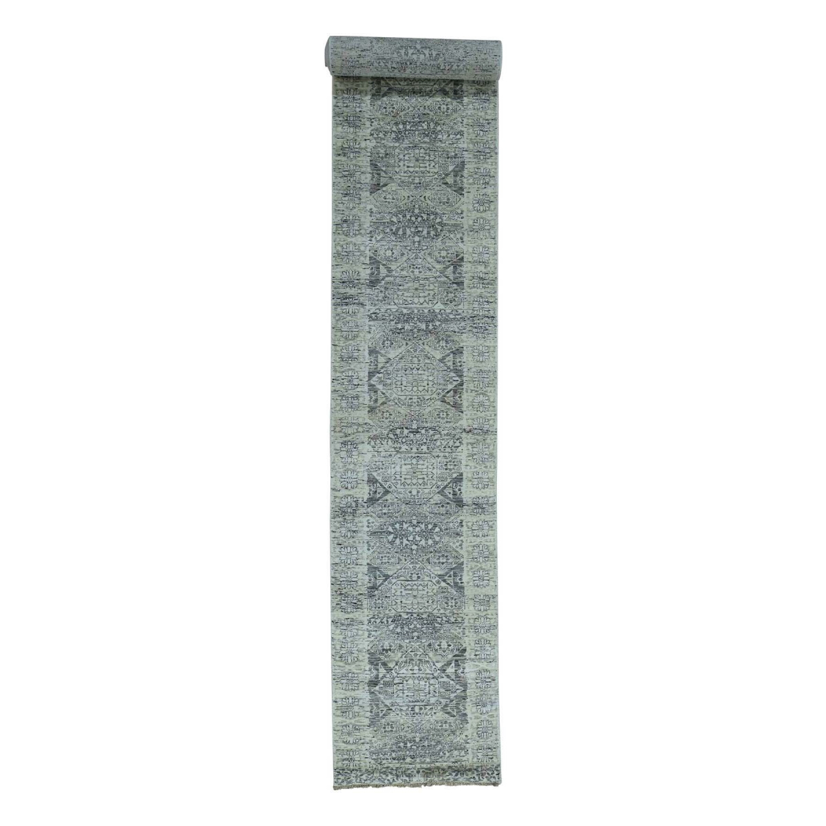 1800 Get A Rug sh35520 2 ft. 9 in. x 18 ft. Hand Knotted Undyed Natural Wool Mamluk Runner Oriental Rug Grey - Extra Large