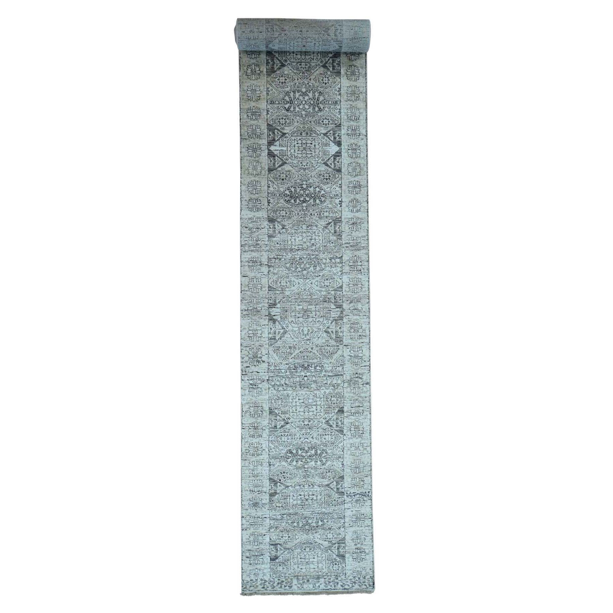 Features- This is a truly genuine one-of-a-kind hand knotted undyed natural wool mamluk design xl runner rug