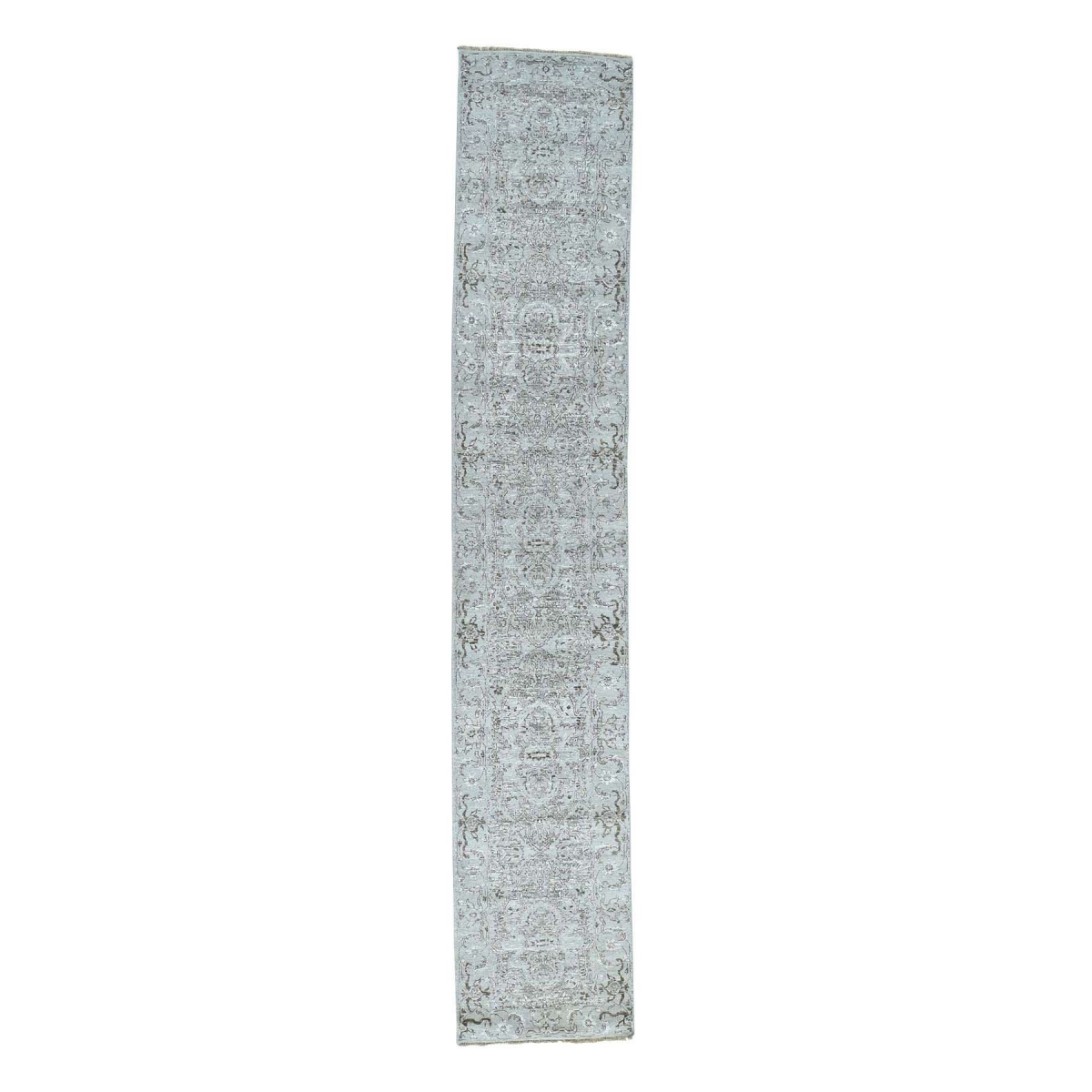 1800 Get A Rug sh35523 2 ft. 7 in. x 14 ft. 8 in. Hand Knotted Undyed Natural Wool Heriz Design Runner Rug Grey