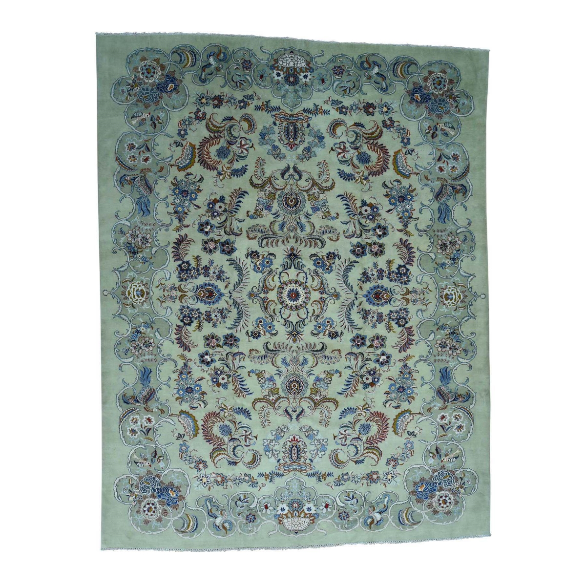 1800 Get A Rug sh35535 10 ft. 7 in. x 13 ft. 9 in. Hand Knotted Persian Kashan 100 Percent Wool Oriental Rug Green