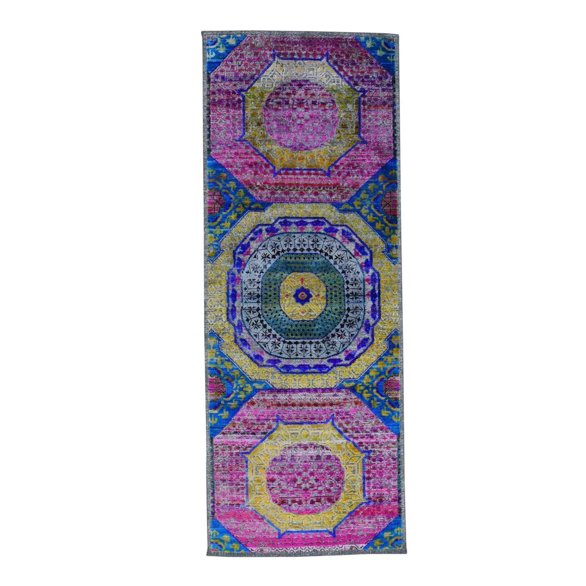 1800 Get A Rug sh35557 3 ft. x 8 ft. Handmade Mamluk Design Pure Sari with Silk Oxidized Wool Runner Rug Multicolor
