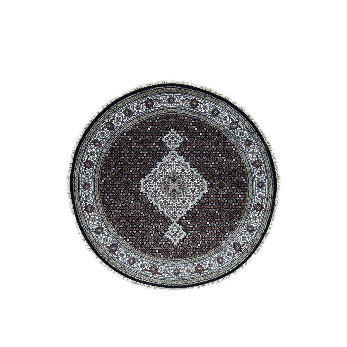 1800 Get A Rug sh35571 5 ft. x 5 ft. 1 in. Hand Knotted Tabriz Mahi Round Wool and Silk Oriental Rug Black