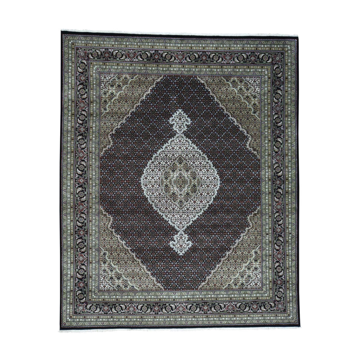 Features- This is a truly genuine one-of-a-kind hand-knotted black tabriz mahi wool and silk oriental rug