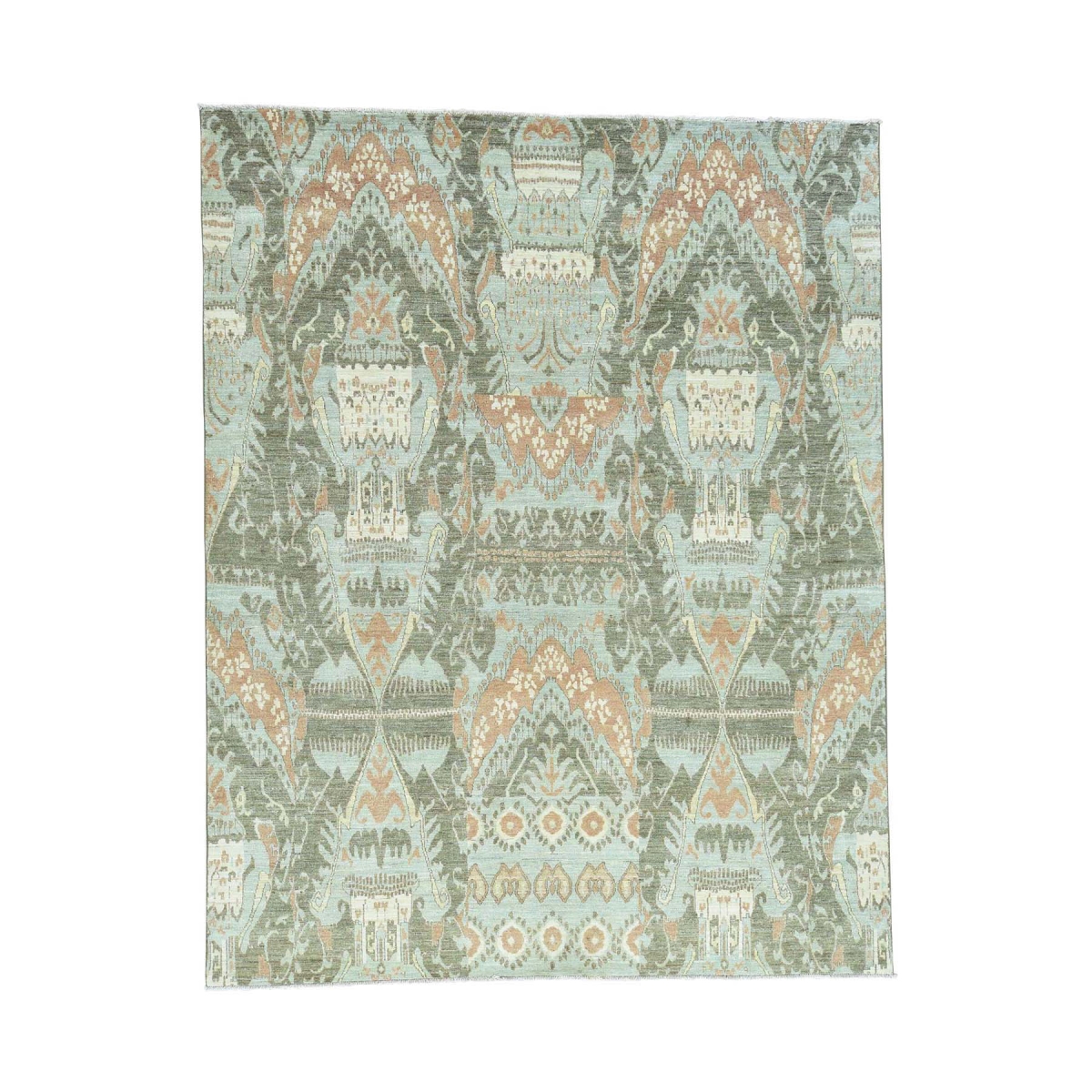 1800 Get A Rug sh35610 8 ft. 2 in. x 10 ft. 3 in. Hand Knotted 100 Percent Wool Ikat Uzbek Oriental Rug Green