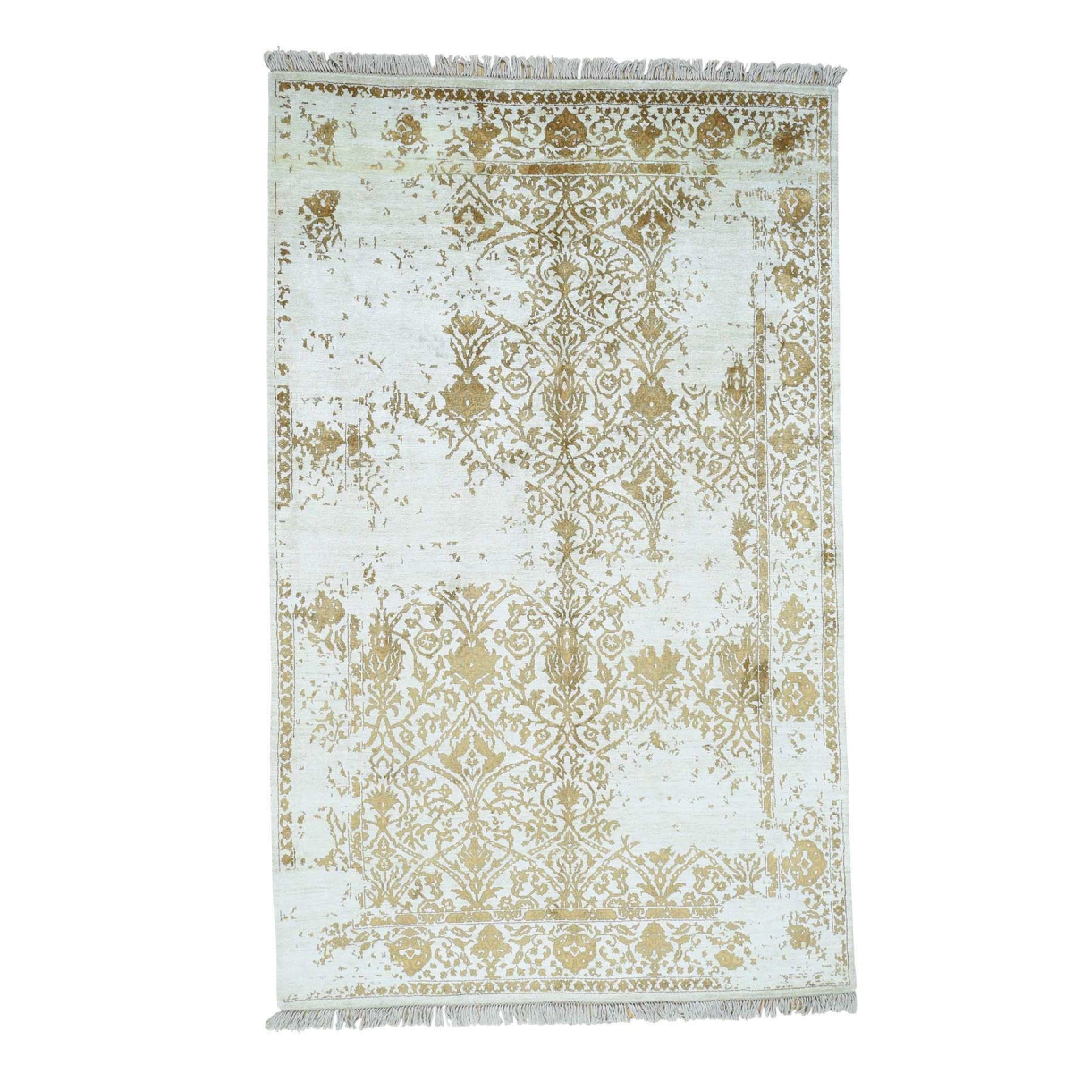 1800 Get A Rug sh35637 6 ft. x 9 ft. 4 in. Honey Brown Art Silk Broken Design Hand Knotted Oriental Rug Ivory