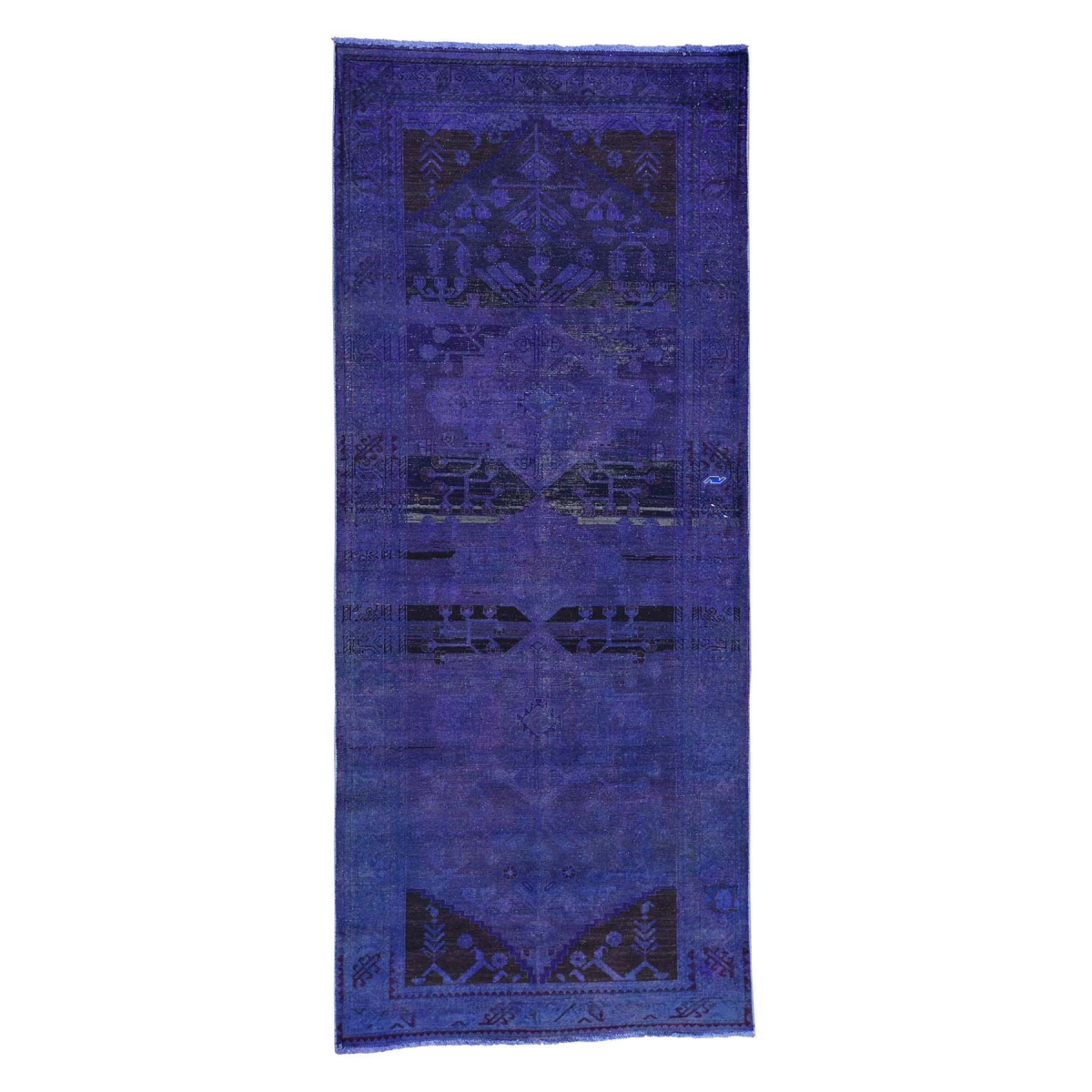 This is a truly genuine one-of-a-kind oriental hand-knotted abrash effect overdyed persian hamadan wide runner rug