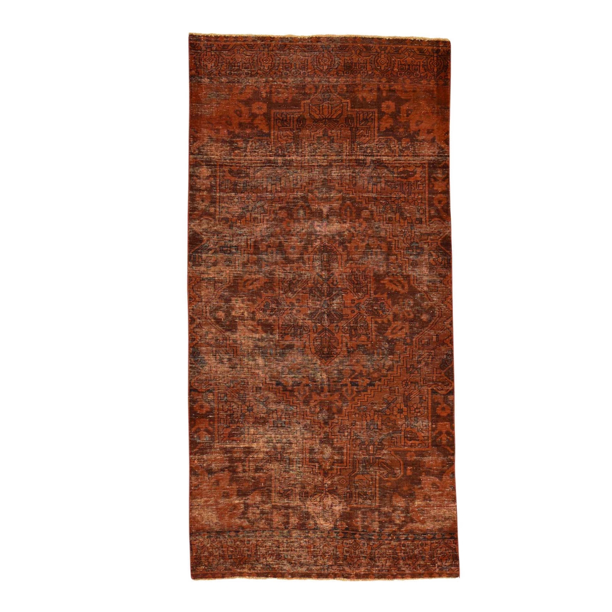 This is a truly genuine one-of-a-kind hand-knotted overdyed persian bakhtiari oriental wide runner rug