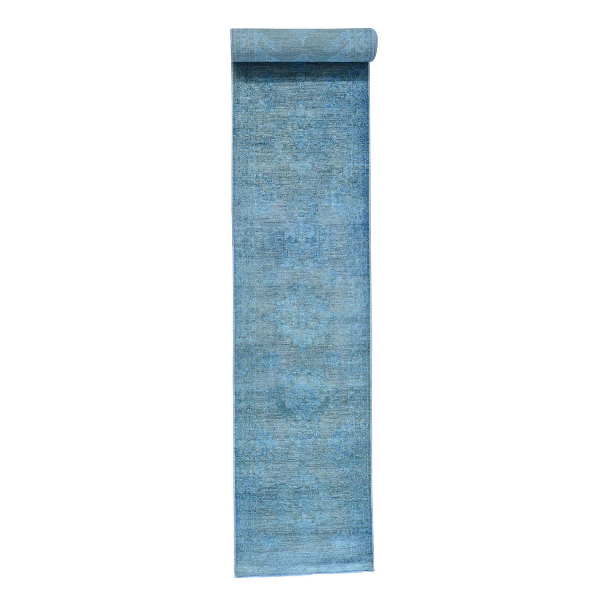 1800 Get A Rug sh35693 2 ft. 7 in. x 18 ft. 2 in. Overdyed Hand Knotted Peshawar Oriental Runner Rug Blue - Extra Large