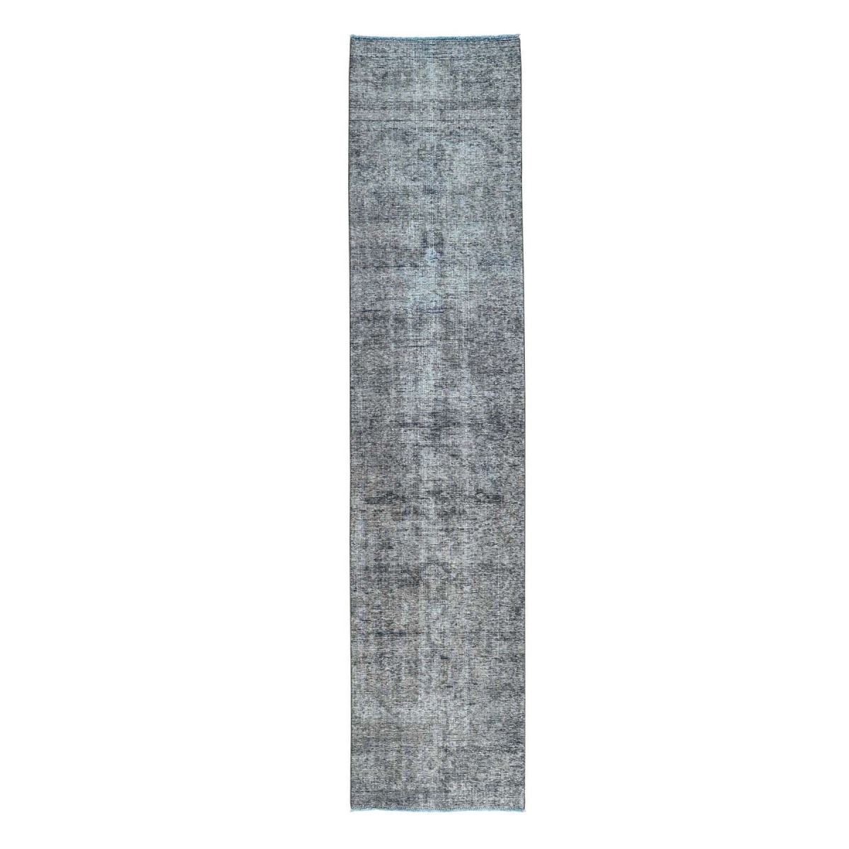 1800 Get A Rug sh35704 2 ft. 8 in. x 12 ft. Overdyed Pure Wool Tabriz Hand Knotted Oriental Runner Rug Blue