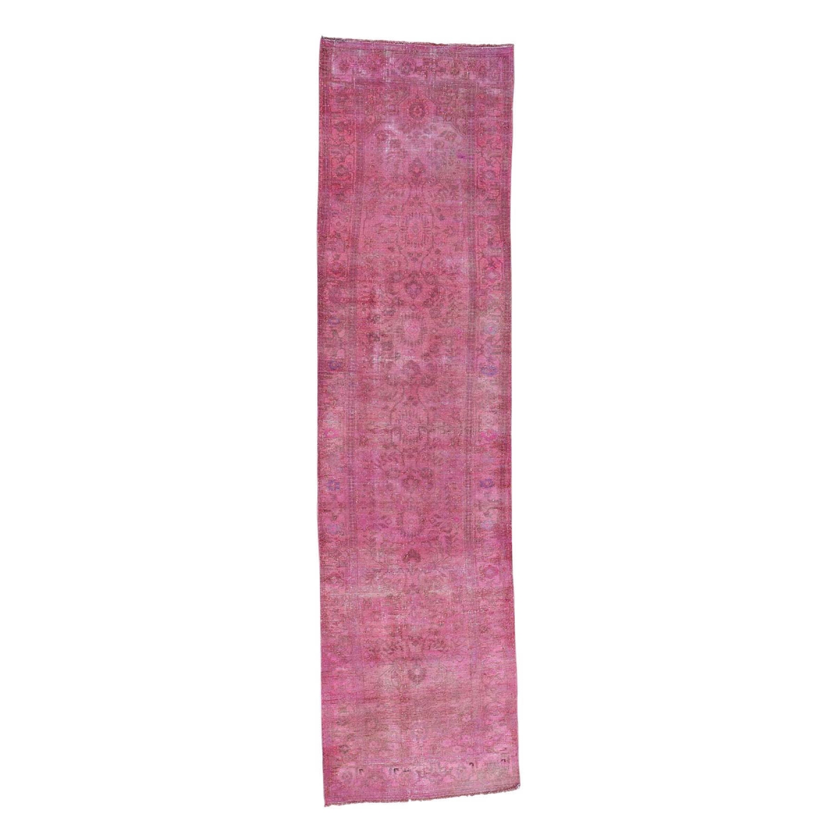 1800 Get A Rug sh35708 3 ft. 2 in. x 12 ft. 3 in. Persian Hamadan Hand Knotted Overdyed Oriental Runner Rug Worn Pink