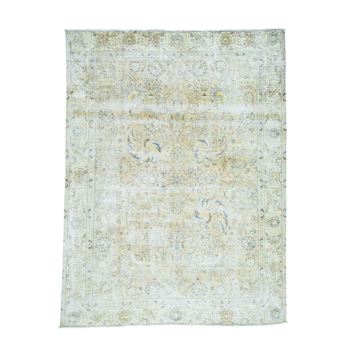 Features- This is a truly genuine one-of-a-kind hand-knotted white wash tabriz zero pile shaved thin rug