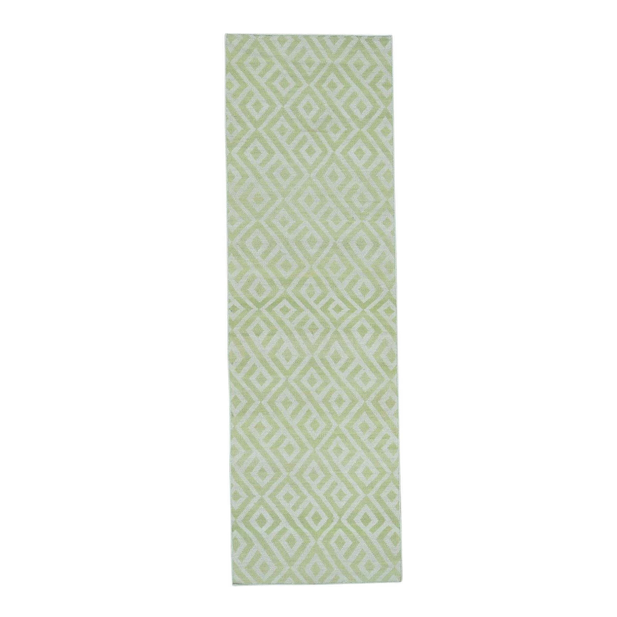 1800 Get A Rug sh35750 2 ft. 6 in. x 8 ft. 1 in. Hand Woven Pure Wool Reversible Kilim Flat Weave Runner Rug Green and Ivory