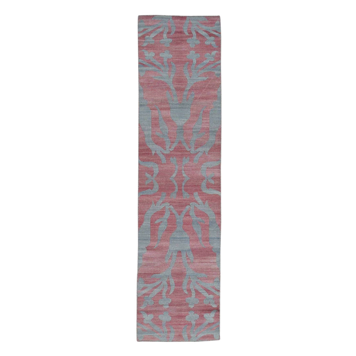 1800 Get A Rug sh35754 2 ft. 6 in. x 10 ft. 1 in. Hand Woven Pure Wool Reversible Kilim Flat Weave Runner Rug Pink