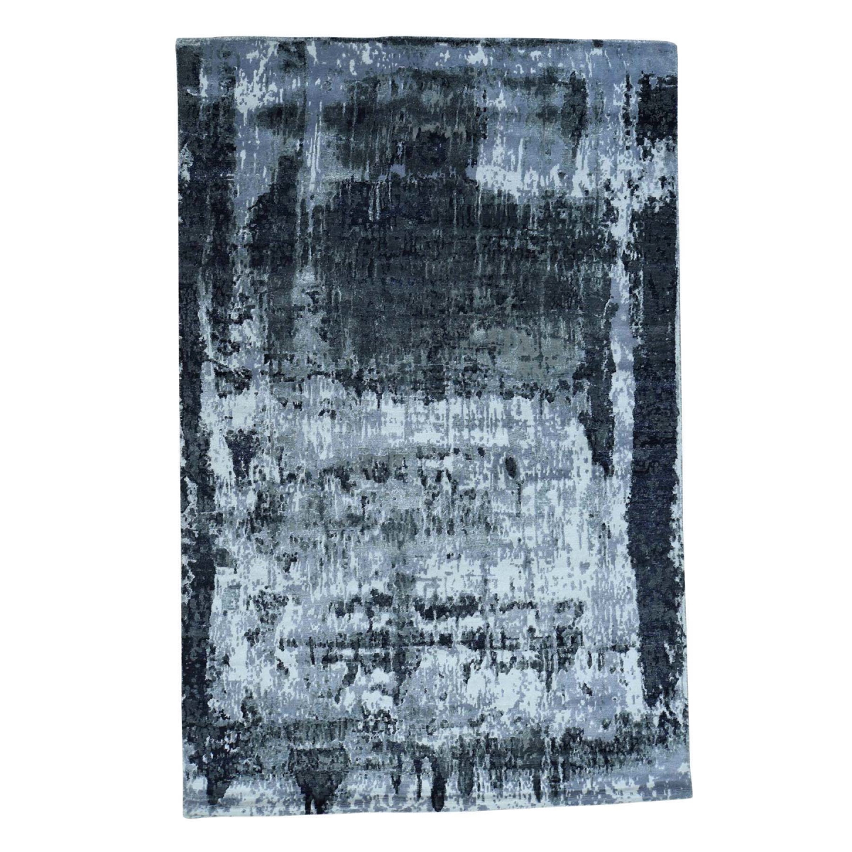 Features- This is a truly genuine one-of-a-kind hand-knotted hi and low pile wool and silk abstract design rug