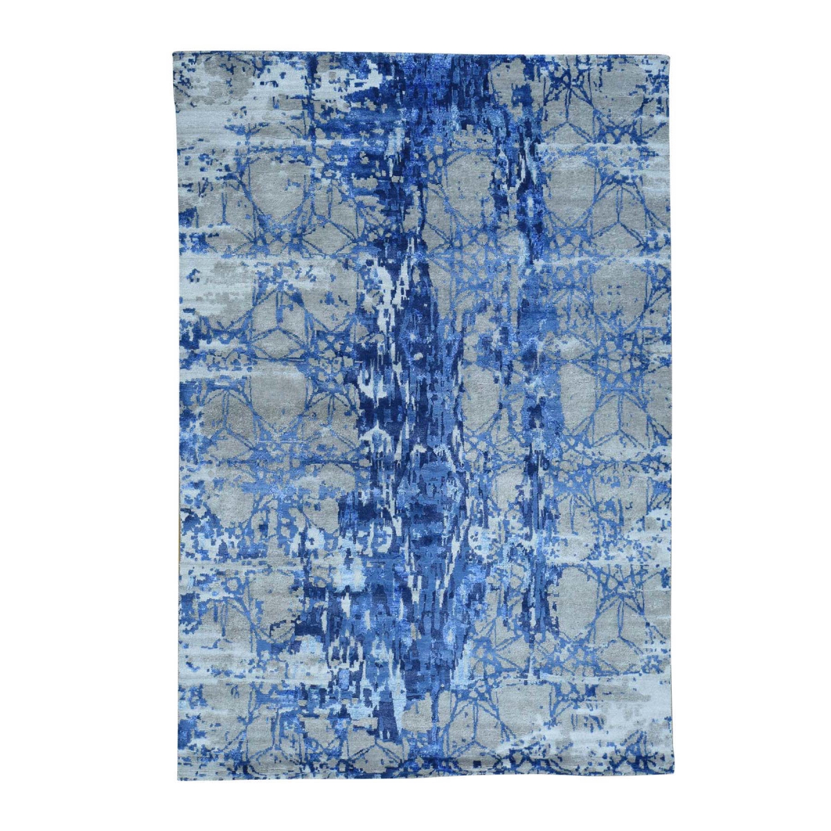 1800 Get A Rug sh35773 6 ft. 1 in. x 8 ft. 10 in. Hand Knotted Wool and Silk Abstract Design Oriental Rug Blue