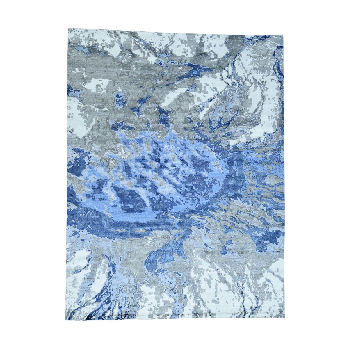1800 Get A Rug sh35794 9 ft. x 11 ft. 10 in. Hand Knotted Abstract Design Wool and Silk High and Low Pile Rug Blue